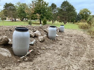 We’ve got plants on order and are collecting water in our rainbarrels in anticipation of a future with a lovely garden at the entrance to the walking paths. Sign up to help us at the end of May as weather allows.