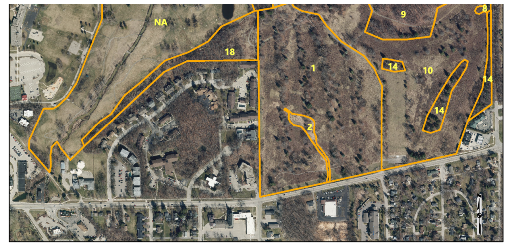 Thanks in large part to our member Betty Volquardsen, the Avian Committee has won a small grant for native bird-friendly plants to put along the small stream that runs under Hwy 50 onto the front of Hillmoor (section 2 above) to attract bug and bird diversity on HIllmoor.