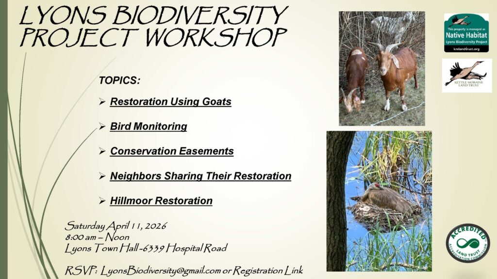 The Friends are presenting information about progress on Hillmoor at the 5th Annual Lyons Biodiversity Project Workshop on Saturday April 11, from 8:00 a.m. to Noon at the Lyons Town Hall. You may attend virtually if you cannot make it in person. Please REGISTER HERE through the secure link.